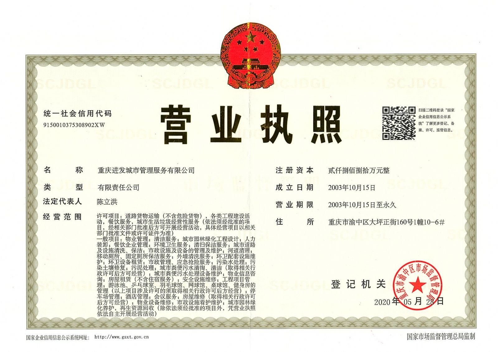 ? ? 重慶進發城市管理服務有限公司(原名重慶進發物業管理有限公司),成立于2003年10月,注冊資金2880萬元,位于重慶市渝中區大坪正街160號10-6,主要從事住宅、商住樓、寫字樓、商業、政府辦公樓、學校等各類型大樓的物業管理服務以及城市道路環境衛生管理服務。